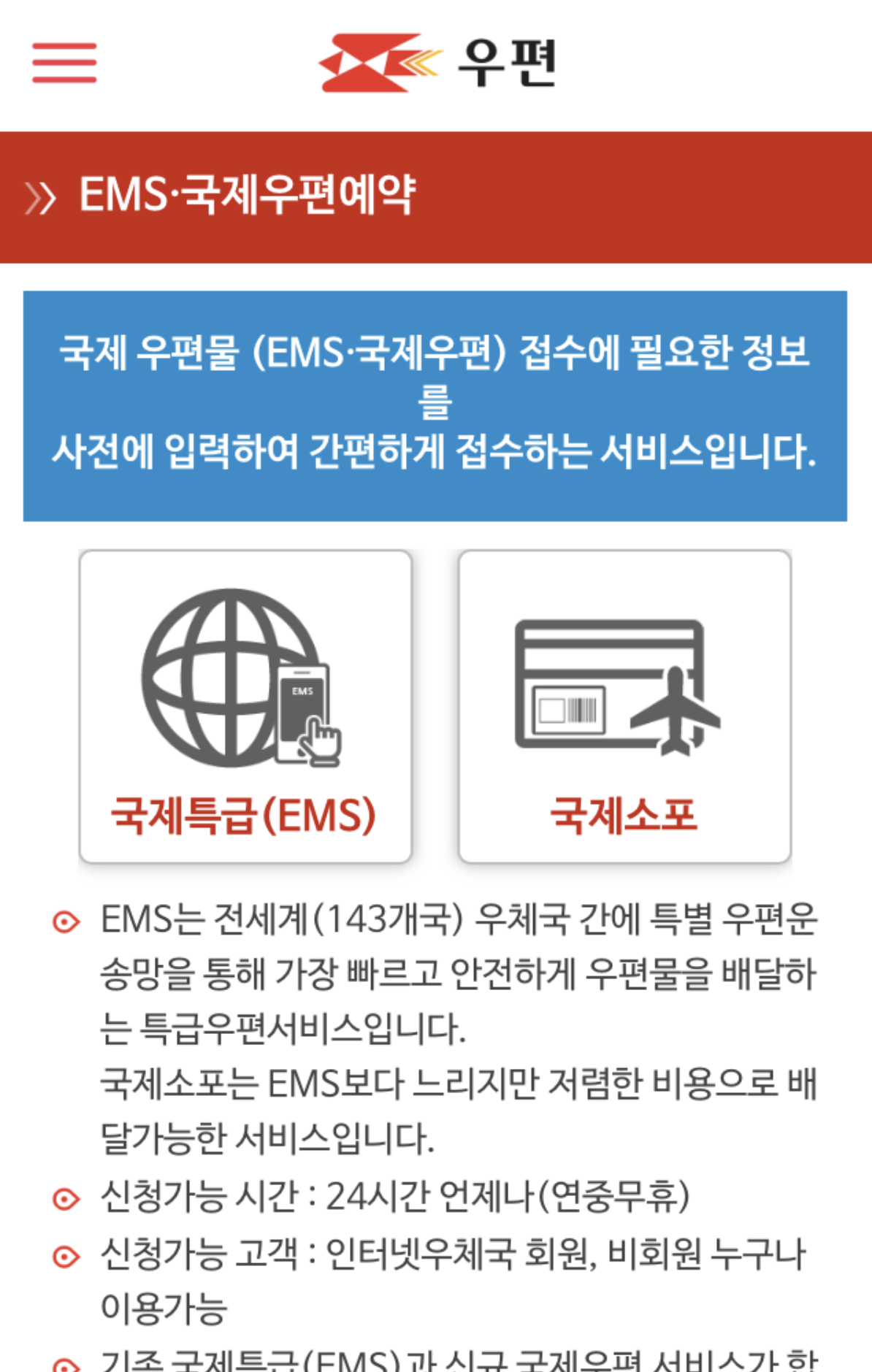 3월 24일부터 내국인이 해외 거주 한국 국적 가족에게 최대 월8매(공적판매처에서 판매하는 마스크 기준)를 우체국 EMS를 통해서 보내는것이 가능해졌습니다. (현재 캐나다는 EMS만 가능한 상태입니다.) 보낼때 기준 조건이 굉장히 까다롭기 때문에 아래 사진(내용)을 읽어보시고 택배를 보내시기 바랍니다. 온라인이나 모바일을 통해 접수를 한 후, 접수 확인서를 출력하여 우편물과 함께 우체국에 방문해야 합니다.