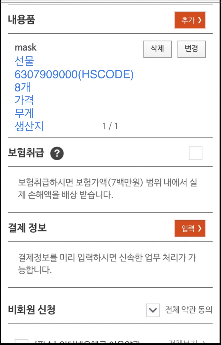 한국시간으로 3월 25일 아침 10시에 저희 부모님이 우체국에 가서 부치셨습니다. 어떤 사이트에서는 공적 판매처에서 파는 마스크 8개 외에 면 마스크와 필터는 더 보낼 수 있다고 쓰여있었는데, 저희 부모님이 물어보니 우체국에서는 8개까지만 가능하다고 했다고 합니다. 3월 29일 어플을 통해서 저의 택배가 어디 있나 확인을 해보니 아직까지 한국에 있는것으로 조회가 되고 있습니다. 아직까지 출발 안한것을 보니 아마 한 달이 걸릴 거 같습니다. 3월 30일 우체국 EMS사이트에 들어가니 캐나다의 일부지역만 택배 가능 정보가 업데이트되었습니다.